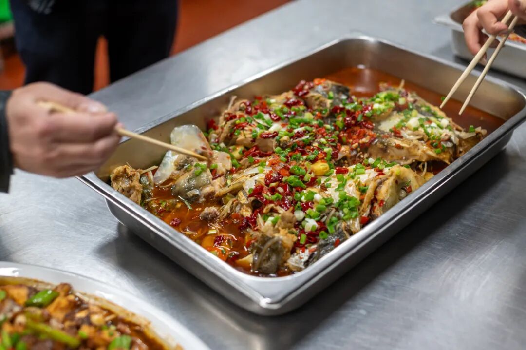 捕鱼的热闹还未散去,食堂的鲜香已袅袅飘来。食堂师傅将新鲜的渔获烹制成一道道佳肴。葱油鱼块、鱼头豆腐汤、剁椒鱼头……香气四溢的“全鱼宴”向全校师生免费供应,让大家共享丰收的喜悦。