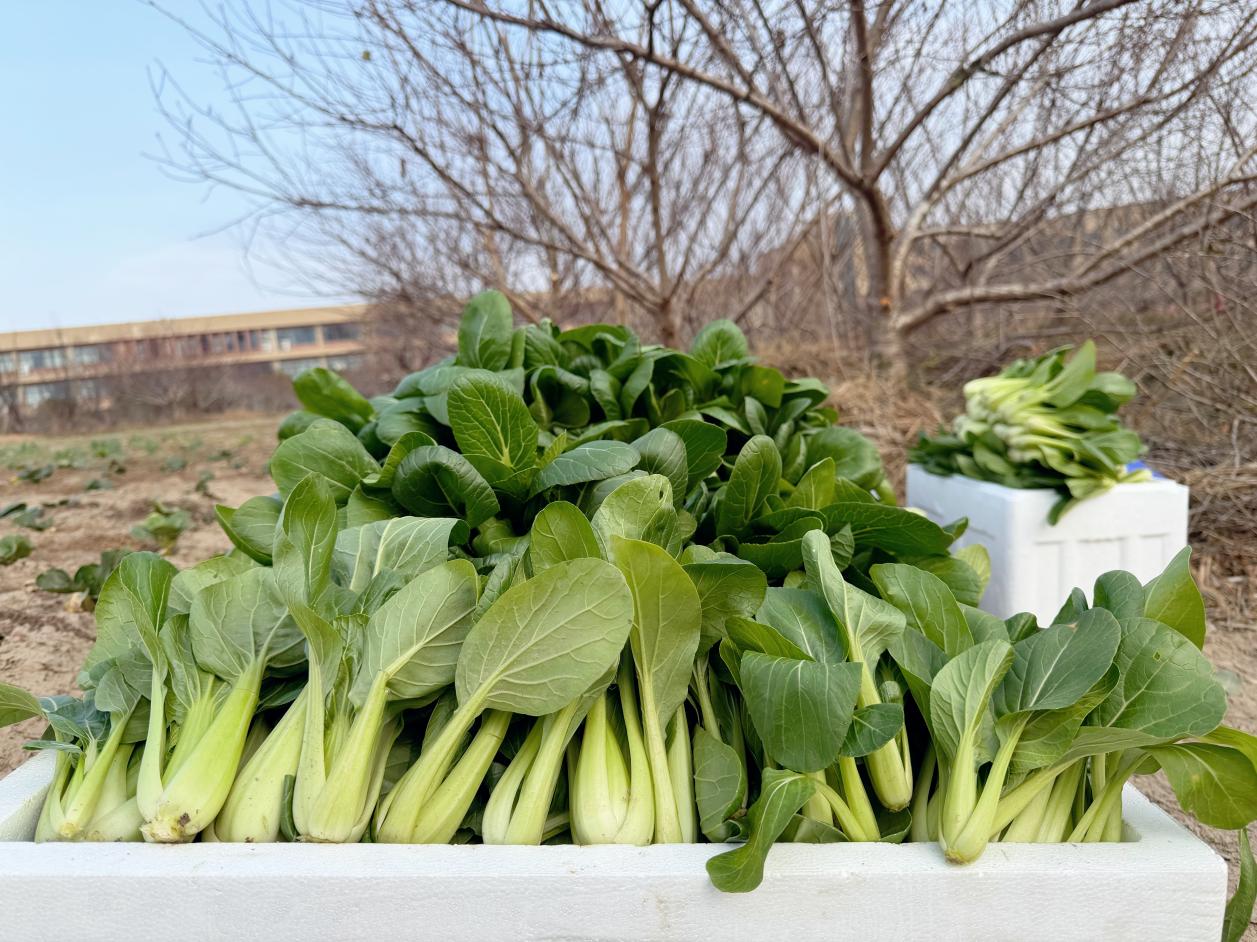据悉,此次提供蔬菜的海宁校区南边小菜园于今年10月新开辟而成,位于学校大棚东侧闲置区域,占地面积约600平方米。后勤团队充分利用闲置空间,深耕细作、科学管护,全程采用生态种植模式,目前园内已成功培育出青菜、红菜苔、菠菜、萝卜、豌豆等多品种有机蔬菜,形成了丰富多样的种植格局。