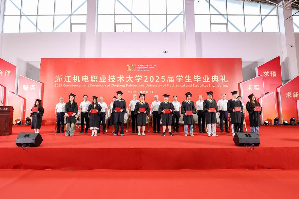 现场,汤兆武为2025届浙江省优秀毕业生代表颁发荣誉证书,并与他们握手祝福、合影留念。同学们将始终牢记“求实、求精、求新”的校训,在新的岗位、新的领域接续奋斗、不断创新,谱写崭新的青春乐章。
