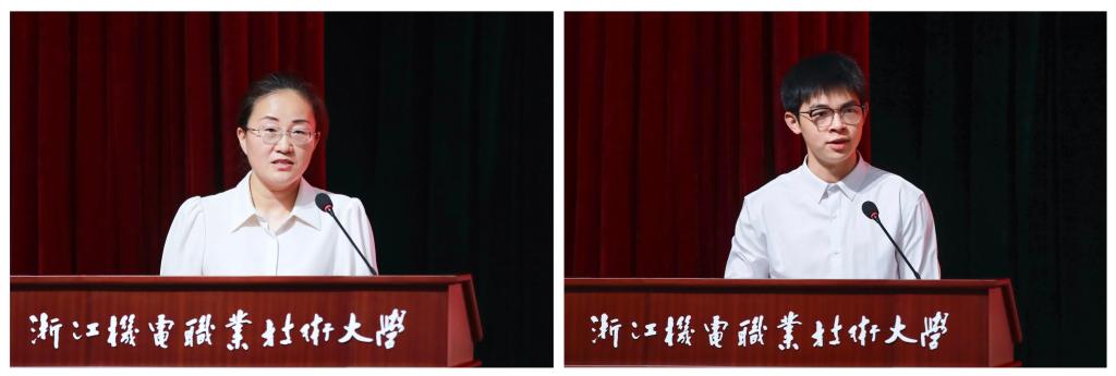 智能制造学院教师杨天玲、智慧交通学院城轨控制2471班学生蒋顺意分别作为教师代表与学生代表发言。