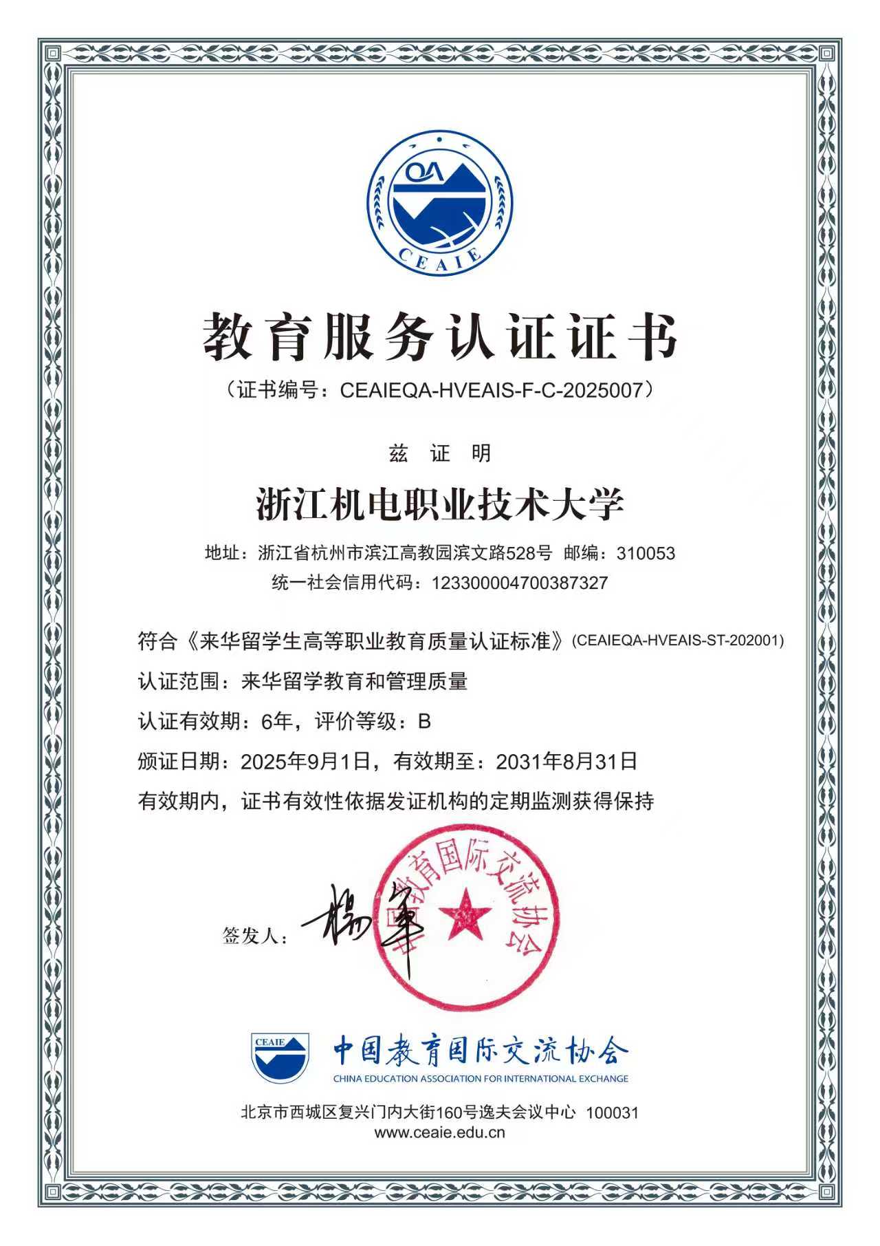 10月30日,由中国教育国际交流协会主办的第26届中国国际教育年会在京召开,教育部部长怀进鹏出席并致辞。本届年会以“以教育见世界”为主题,包括全体大会、平行论坛、合作洽谈和教育展览等百余场双多边活动。在同期举办的“育见中国——来华留学高质量发展国际研讨会”平行论坛上,中国教育国际交流协会公布了2025年上半年来华留学生高等教育质量认证(再认证)及来华留学生高等职业教育质量认证结果。taptap点点官方网站获得六年认证有效期,获评B级优异成绩,标志着学校来华留学教育质量迈上新台阶。