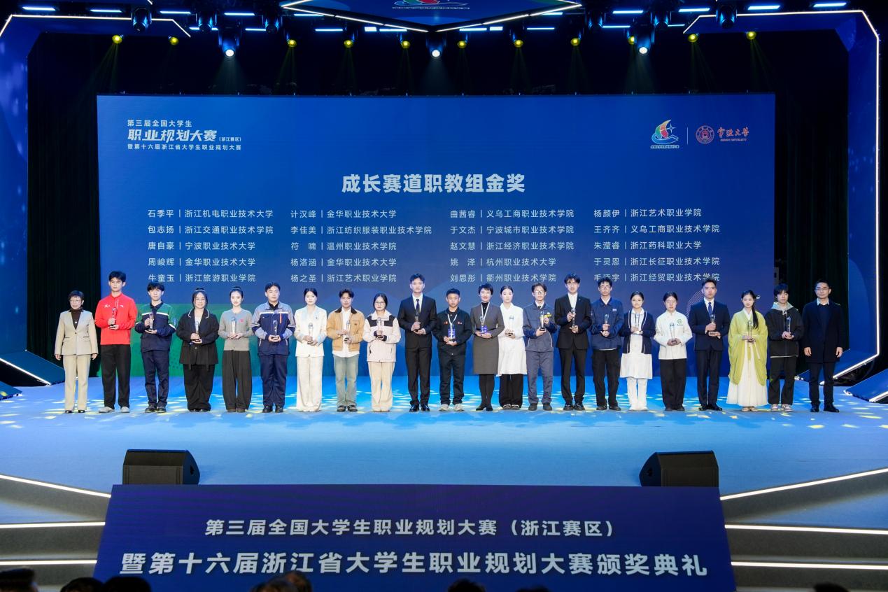 本届浙江省大学生职业规划大赛共吸引全省104所高校参加,共881名选手进入省级复赛,最后216名选手入围省级决赛。在成长赛道中,自动化学院石季平同学斩获金奖(位列该赛道第一名);在就业赛道中,人工智能学院卢益凡、增材制造学院吴兴桐2位同学斩获金奖。学校6名教师获浙江省职业规划大赛优秀指导老师。