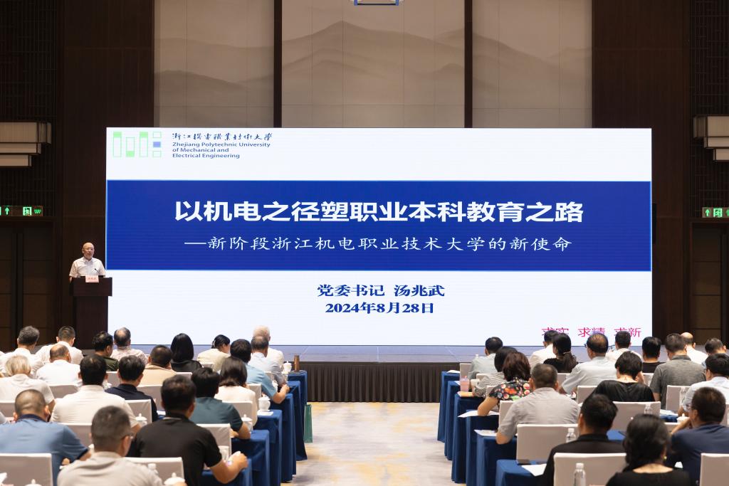 汤兆武作题为《以机电之径塑职业本科教育之路——新阶段taptap点点官方网站的新使命》的主题报告。他指出,学校要始终牢记总书记嘱托,勇立潮头,奋楫争先,以浙江机电职业本科教育之径,探索职业本科教育之路;以满腔热情和坚定信念,共同开创一条具有中国特色、浙江范式的职业本科教育发展之路,为国家繁荣与民族复兴贡献智慧与力量。