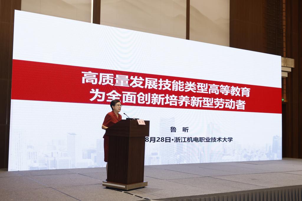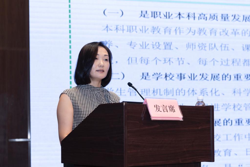 中国职业技术教育学会会长、教育部原副部长鲁昕作题为《高质量发展技能类型高等教育 为全面创新培养新型劳动者》的主题报告。省纪委省监委驻省教育厅纪检监察组副组长王国平,中国高等教育学会原副秘书长、中国高等教育学会学术发展咨询委员会委员、《中国高教研究》主编、编审王小梅分别作《高校领域违纪违法腐败问题探析》《教育科研是办好职业本科的重要支撑——兼谈教育科研论文的写作与发表》专题报告。