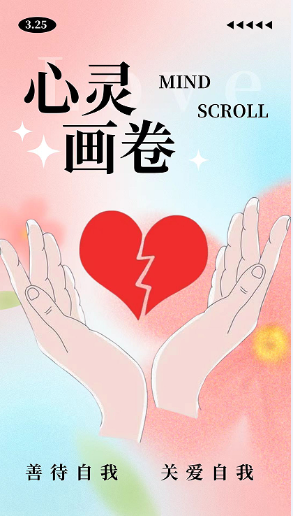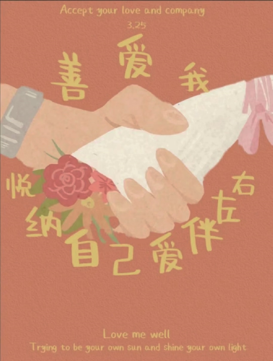 这幅海报以“3.25 善爱我”为主题,倡导关注心理健康。通过柔和的色彩和温暖的图像,传递关爱与理解的重要性。海报呼吁大众重视心理健康,用爱与行动支持身边的人,共同营造一个充满理解与温暖的社会环境。——网络2301 吴果骏
