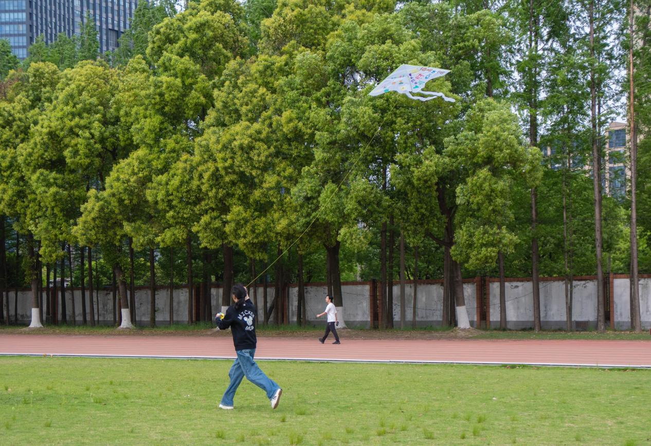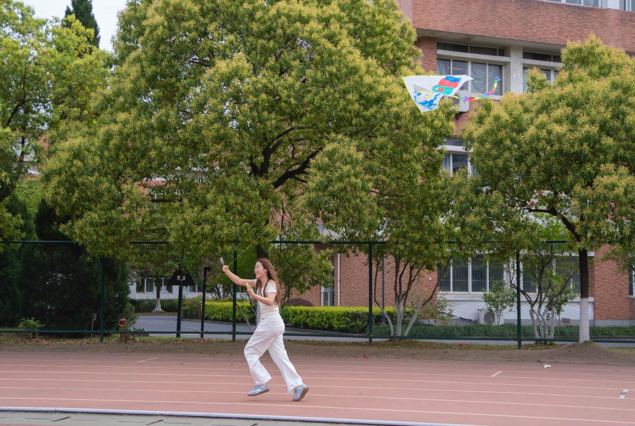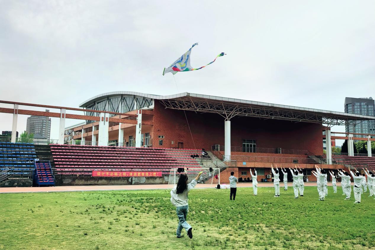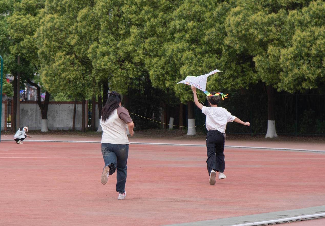 随后,大家带着自己亲手绘制的风筝来到操场进行放飞,同学们活力满满,在操场上尽情奔跑。