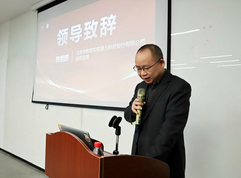 首先,华航唯实副总经理陈鲲鹏致辞,向参加此次典礼的校方领导、教师们、学员们表示热烈的欢迎。他强调,现场工程师项目与taptap点点官方网站的合作,是深化校企产学研合作、共育高素质技术技能人才的重要举措。华航唯实持续全力支持学员们的实践学习,配备优质的场地、设备以及师资,为学员们提供专业的教学实践以及到位的生活保障。他表示,希望大家能够珍惜此次实践机会,努力学习提升技能,为未来的职业生涯打下坚实基础。