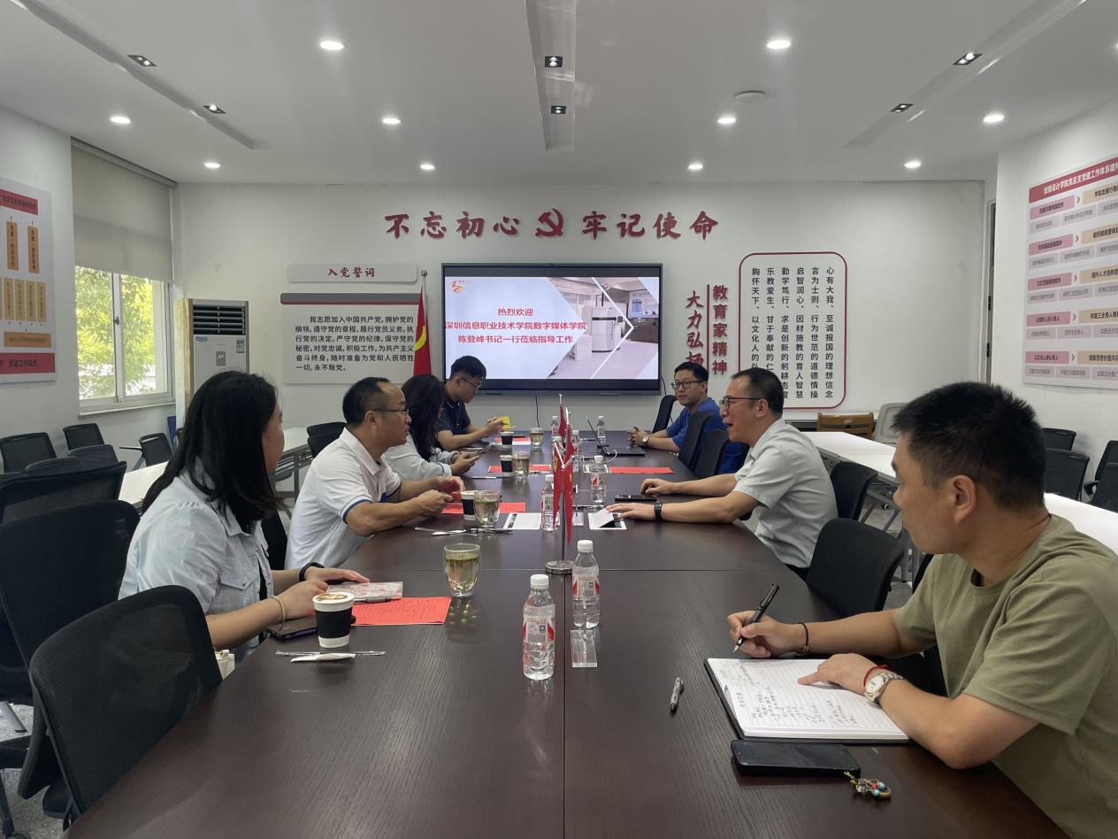 5月30日,深圳信息职业技术学院数字媒体学院党委书记陈登峰一行与创意设计学院开展党建及思政工作调研交流。学院党总支书记符强、党总支副书记史奕等热情接待了来访嘉宾,双方围绕党建工作展开了深入交流探讨。
