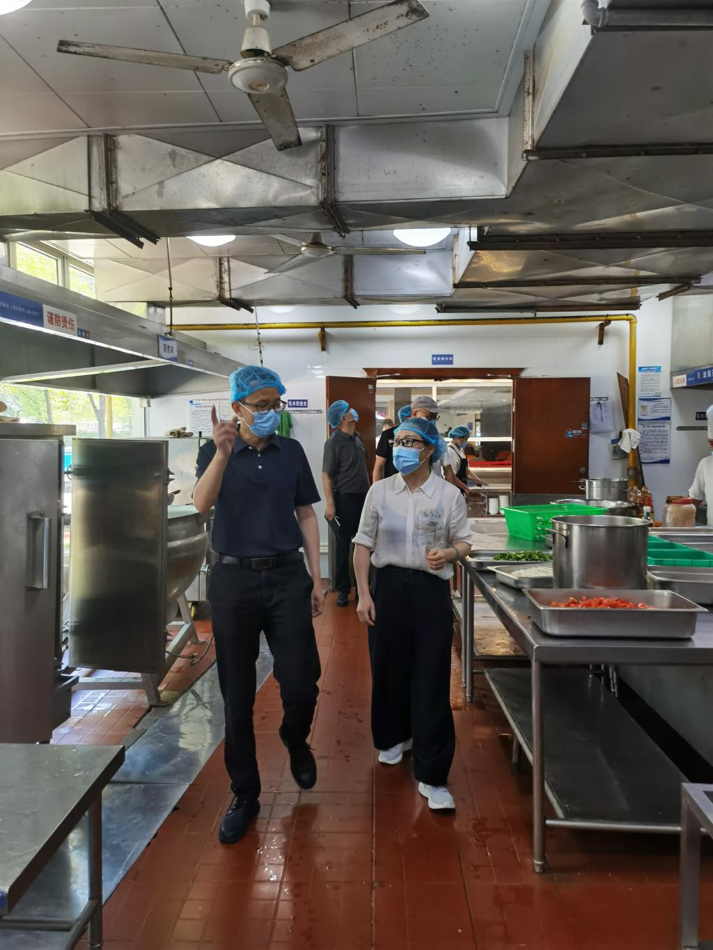 检查组重点检查了高层楼顶、水泵房、高配房、食堂等重点部位。在高层楼顶,工作人员仔细检查防护设施是否牢固,排水管道是否存在堵塞,避免极端天气下发生坠物、积水等安全事故。综合楼水泵房与高配房内,检查组围绕设备运行状况、电力供应稳定性、消防设施完备度等关键环节,进行了专业且细致的核查,全力确保水电供应的平稳与安全。针对食堂,从食材采购源头的把控,到食品加工操作间的卫生状况,再到燃气使用的规范程度,都进行了全面梳理,严格要求食堂工作人员务必严守食品安全操作规范,让留校师生吃得安心、吃得放心。
