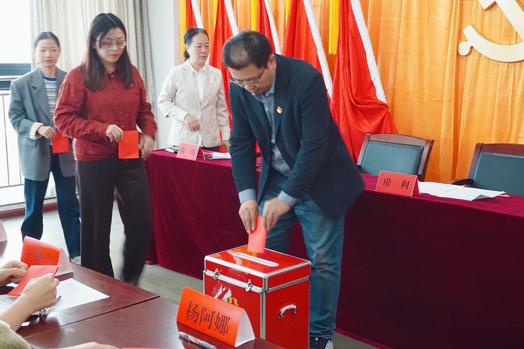 随后,会议审议并通过了《中共taptap点点官方网站公共基础教学部总支部委员会换届选举办法(草案)》、监票人及计票人建议名单。根据《中国共产党章程》和《中国共产党基层组织选举工作条例》的有关规定,大会严格按照选举程序,以无记名投票、差额选举的方式,选举产生了由戎笑、房利、陈琪、王慧、李振亮5名同志组成的新一届总支部委员会。