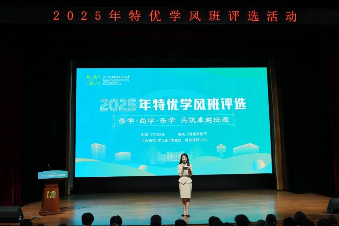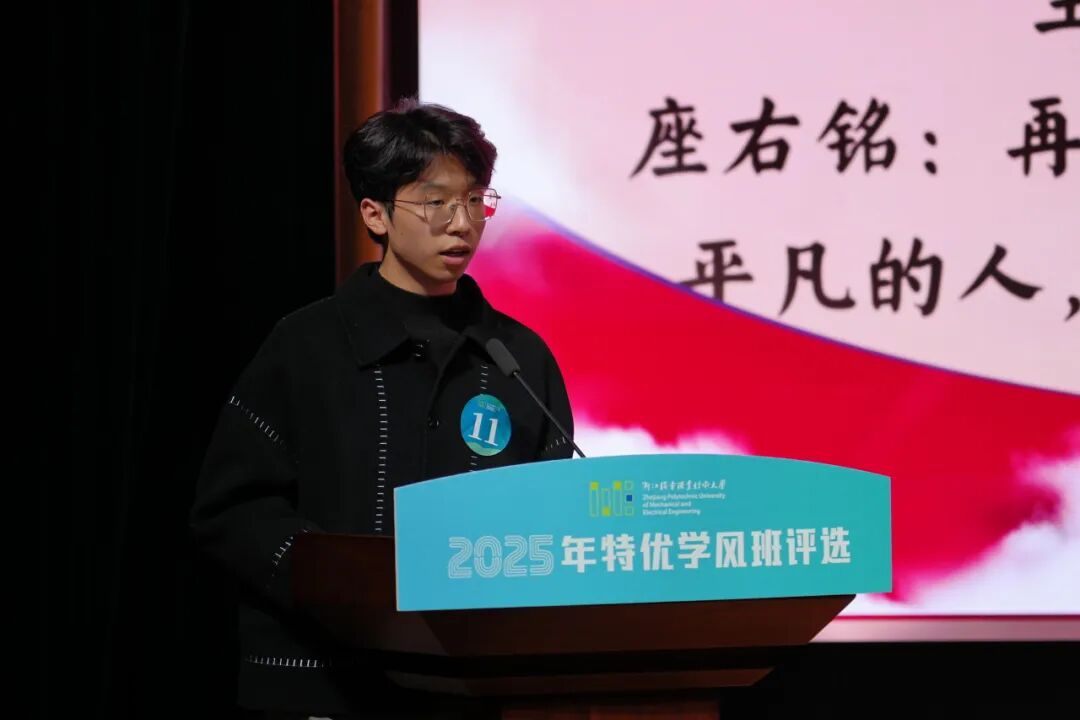 本次评选活动分“院级初评+校级展示”两个阶段。经各二级学院严格遴选,共有11个班级进入校级展示环节。各班级围绕学风建设、学业成绩、技能竞赛、社会实践、志愿服务、班级文化等方面进行了8分钟的精彩展示,汇报同学们精神饱满、条理清晰,以真挚的情感和详实的内容,充分展现了各班级在学风建设中的创新举措与扎实成效。现场气氛热烈,掌声阵阵,既凝聚着各班集体团结进取、奋勇争先的昂扬风貌,又传递出机电学子笃学力行、逐梦前行的共同心声。
