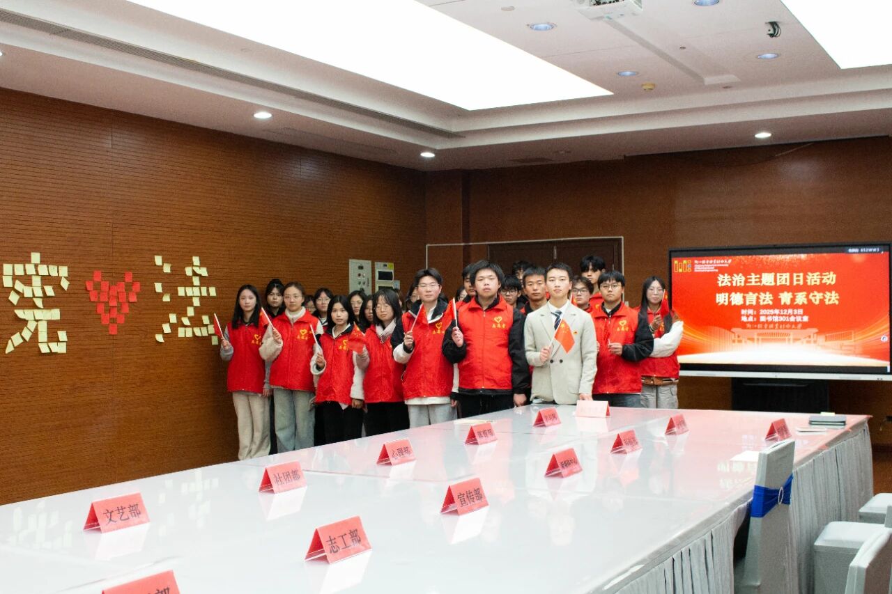 12月3日晚,学校团学组织全体成员齐聚主题团日课现场,集中观看全国“宪法宣传周”法治纪录片。纪录片以典型案例生动展现了宪法权威与法治力量,聚焦大学生校园生活、网络安全、维护权益等重点领域,通过真实案例生动诠释宪法权威与法治力量。活动还针对校园贷、电信诈骗等高发风险进行法律解析,提升学生防范意识和依法维权能力。在“明德言法,青系守法”寄语环节,同学们纷纷写下学法感悟与青春誓言,表达对法治的坚定信仰,展现新时代青年的责任担当。