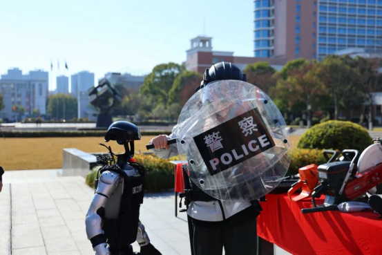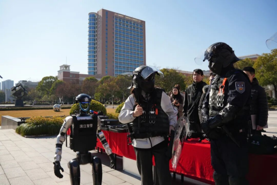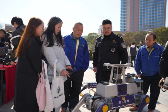 活动还专门展示了反恐、消防装备,警用机器人、四足机器狗、无人巡逻车、无人机等高科技设备一一亮相。