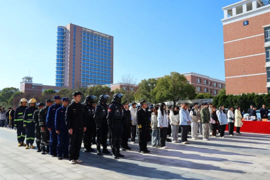 随后,杭州市公安局反恐怖支队负责人代表公安机关在致辞中倡议全校师生以学促防、以行践责、以点带面,都成为反恐怖主义的种子,在学校、在家庭、在社会上积极宣传反恐怖主义,坚决打赢反恐怖“人民战争”;表示公安机关将携手消防、群防群治力量,把校园打造成最阳光、最安全的人才成长摇篮。致辞结束后,出席嘉宾们共同宣布本次活动正式启动。