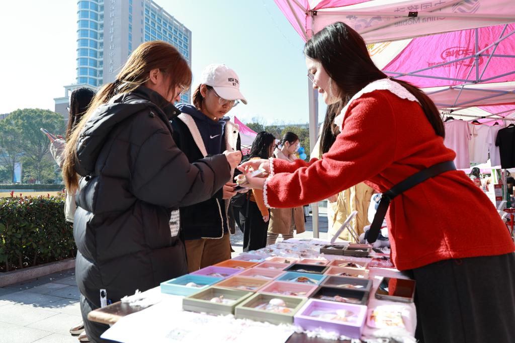 12月29日,正值岁末迎新之际,由创新创业学院主办、大学生创新创业联盟承办的2025年创享市集,在滨江校区热烈启幕。本次活动以“迎元旦·2026马力全开”为主题,融展示、体验、互动于一体,展开了一场持续十一小时的创意交融。从清晨至夜晚,这场跨昼夜的市集,不仅为师生呈现了一场别开生面的文化创意盛宴,更成为校园中汇聚创新思维、碰撞多元文化的生动舞台。