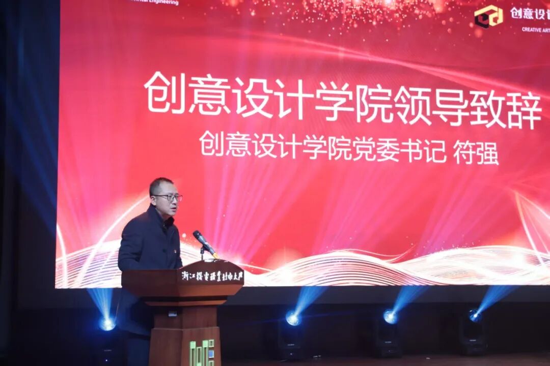 活动在温暖而充满力量的年度回顾视频中拉开序幕。符强为颁奖典礼致辞,他表示,这一年里,我们以“红色引擎”筑牢党建根基,擦亮了“最美设计”的党建品牌;以“勤学笃行”滋养学子成长,见证了许多同学在学业、技能的全面绽放,更以“设计赋能”扎根社会实践。每一份荣誉、每一次突破,都凝结着全体师生的智慧、汗水与坚持,他希望同学们用激情和智慧、勤劳和汗水、拼搏与奋斗续写“最美设计”人的精彩华章。