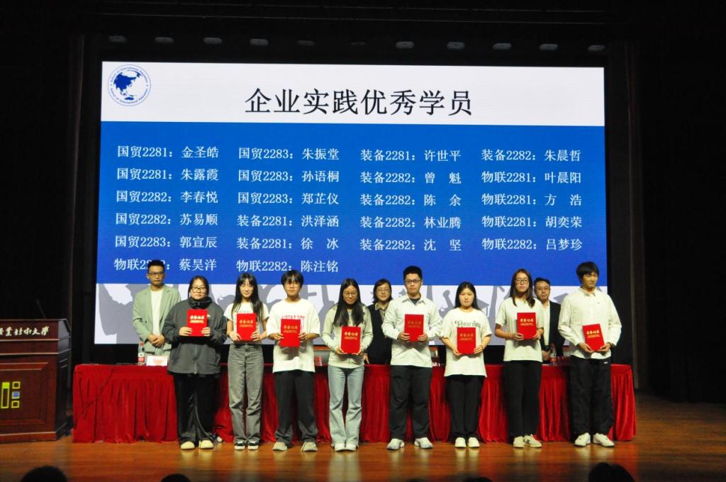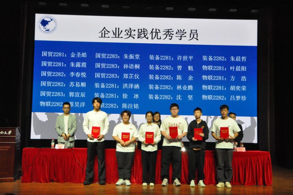 会上,陶宇分别宣读“企业实践优秀学员”“企业实践学生标兵”“企业实践优秀指导教师”以及“企业实践优秀教研室”名单,“企业实践各类优秀”获得者分别上台领奖。