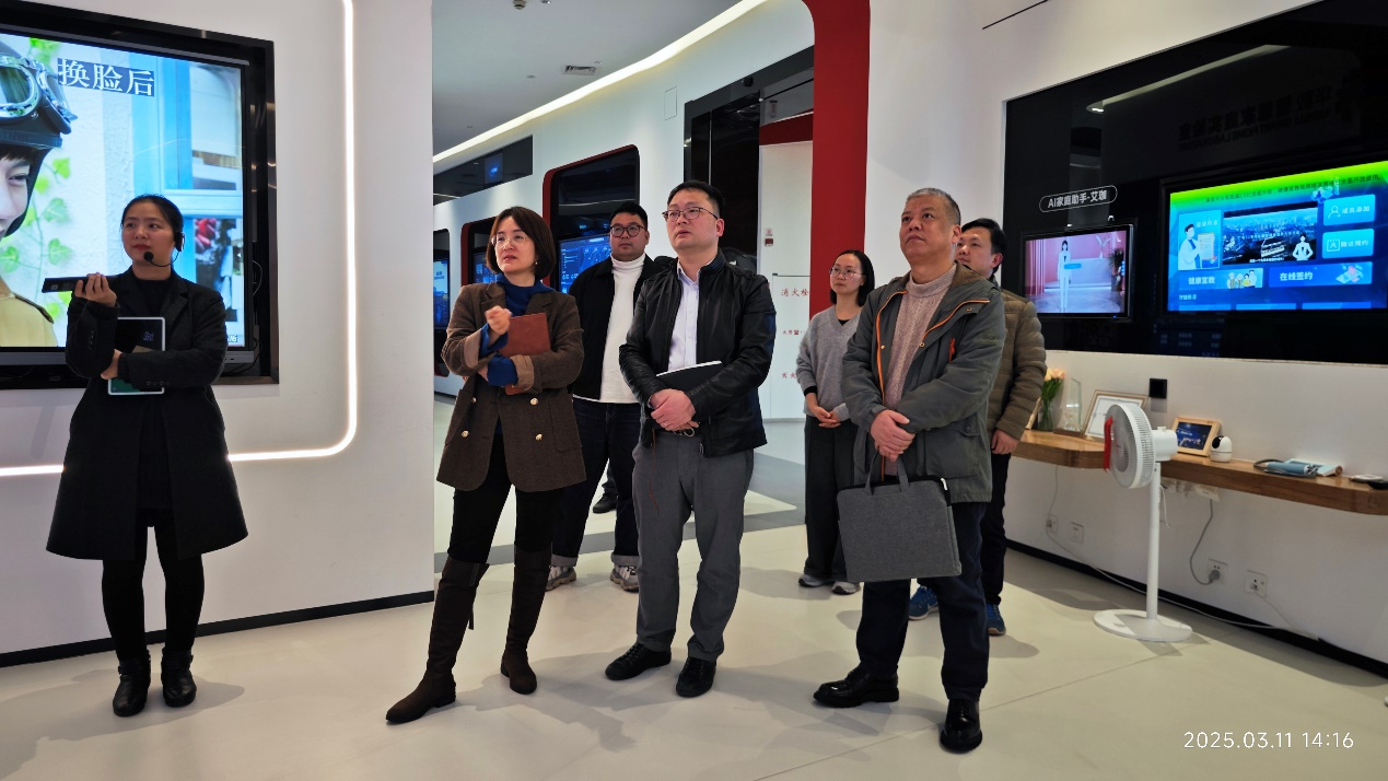 在华数数字产业园展厅,学院一行深入了解了企业文化、产品发展、核心技术与产业布局,调研了智能互动电视、融合媒体、户外大屏、智能家居、智能化一体机等显著成果。学院一行对华数在数字化转型领域的深耕实践表示高度认可,认为企业的技术研发方向与学院专业群建设高度契合,为校企协同育人提供了广阔空间。