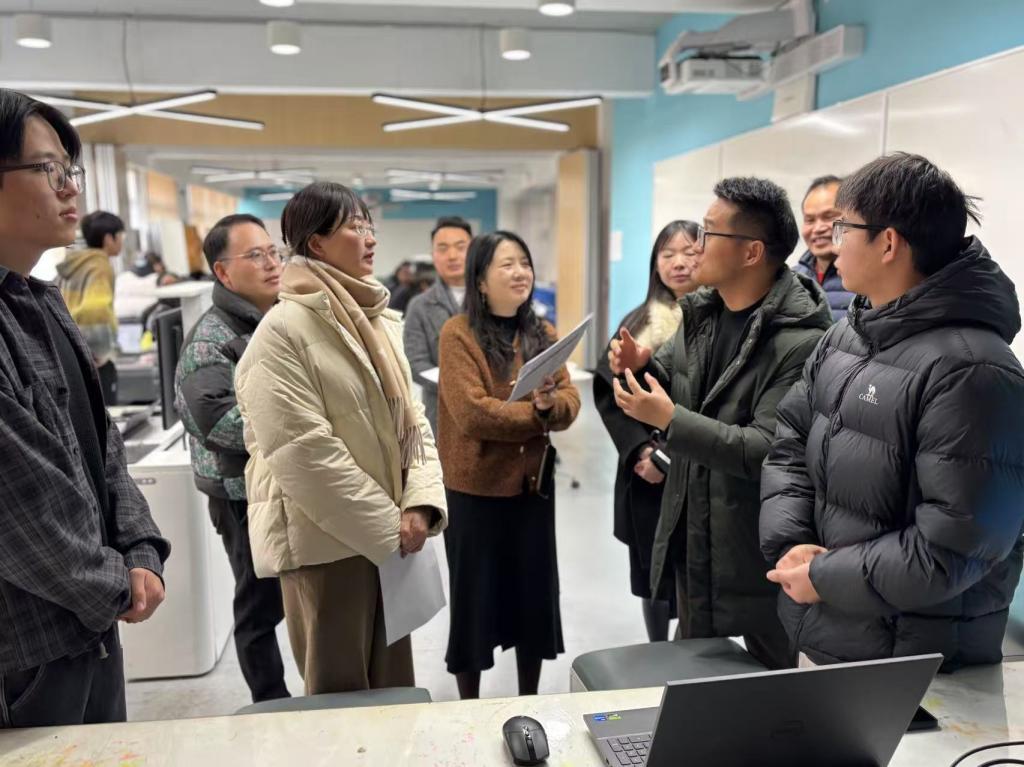 在与各竞赛团队交流的过程中,孙丽园副校长尤为关心项目本身的技术内涵与创新价值。她反复强调:“参加世界级大赛,核心是要展现我们解决实际问题的能力。你们这个项目瞄准了什么技术难点?突破点在哪里?解决方案是否具有创新性和应用前景?”这些切中肯綮的提问,引导师生不断深化对项目本质的理解。她认真聆听每个团队的介绍,时而点头肯定,时而追问细节,对师生们展现出的专业精神和探索劲头表示赞赏。这种聚焦问题导向的交流,不仅检验了前期的训练成果,更启发了师生对项目深度和广度的进一步思考,为后续优化指明了方向。