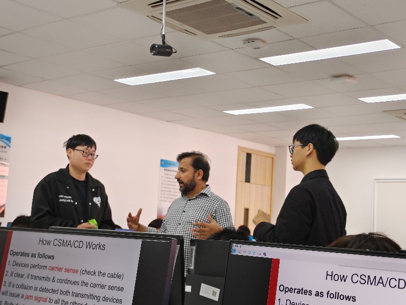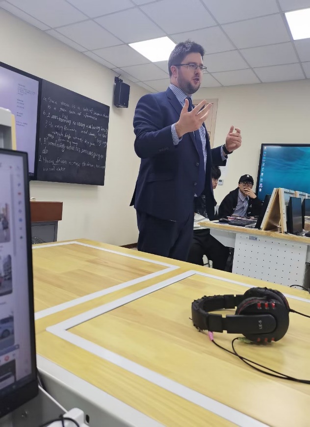 英方外籍教师来访期间,英语教师Jim、物联网应用技术专业教师Muddesar按照教学计划给智能制造装备技术专业和物联网应用技术专业的学生进行集中授课,两位外教授课方式新颖,课堂气氛活跃,深受学生的喜爱。