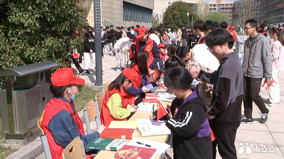 在学校广场上,校团委和部门学生社团共同组织了一场“党课竞赛”快闪活动。学生们需要完成党团常识我心知、党团赞歌我传唱、党团故事我聆听、党团徽章我荣获、党团誓言我宣扬、党团为民我志愿6个板块的活动。