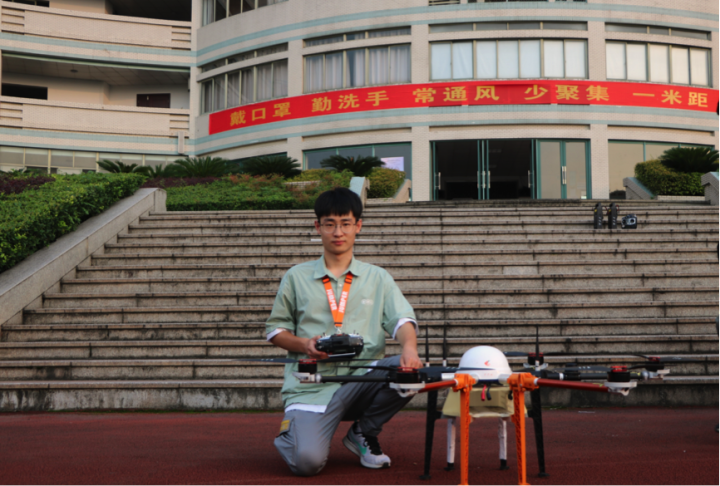 除了参加学院开设的无人机操纵课程,他自学无人机设计类知识,无人机开源资源虽多,但他不知疲倦,求知若渴。三年时间,他自学空气力学、机械结构绘制、飞控电调电路设计、PID\FOC\RPM滤波算法、智能识别算法等,现已实现无人机自动识别,投递/拾取外卖,他的目标是让无人机实现自由简易的集群控制。