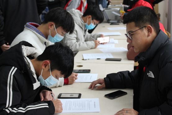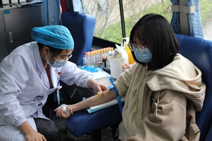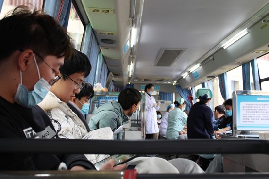 同学们早早就排起了长队,在志愿者的协助下,填写献血登记表、测量心率、采血检验等献血准备。在经过层层筛选后,依次登上献血车,为他人献出自己的一份血液,为社会献出自己的万份真情。