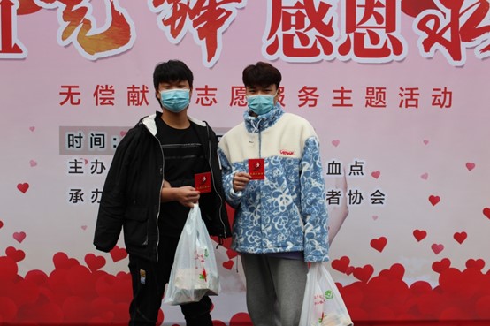 在献血时,同学们脸上无不洋溢着幸福的笑容,这是献血带给他们油然而生的自豪感!