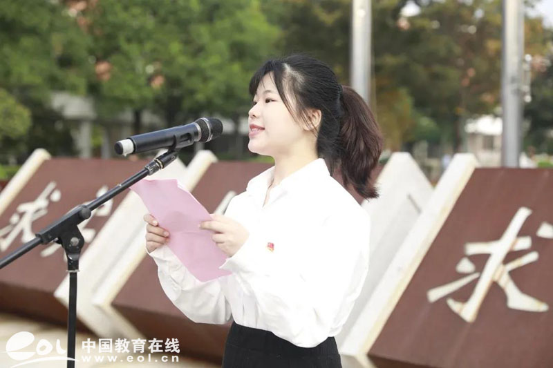 青年团员代表邓媛媛同学围绕“当代大学生应肩负重任,奋勇前行”的主题进行了国旗下的演讲,展现了当代青年爱国赤诚之心,践行工匠精神,发奋图强,为实现祖国伟大复兴而奋进的报国之情。