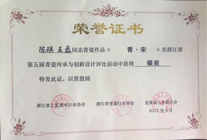 产品1642陈瑛、王磊同学作品《青·宋》获第五届浙江省青瓷传承与创新设计展示评比活动银奖
