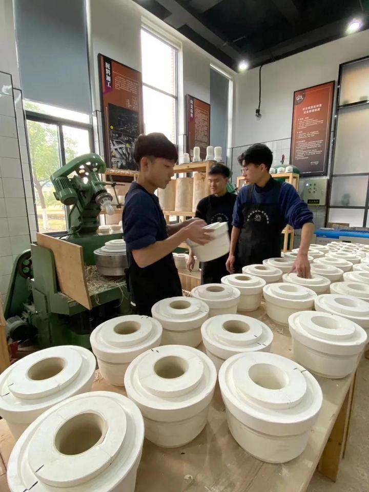 浙江机电职业技术学院传统手工艺陶瓷实训基地使用面积约为1200平方米,由综合成型室、手作室、烧成室、展品陈列室及大师工作室五大功能区组合而成,能同时容纳200余名学生进行教学与实训创作。拥有泥料练制、高压注浆、异型陶瓷滚压成型机、拉坯机、车模机、泥板机、练泥机、石膏真空搅拌机、打浆机、球磨机、喷釉台、燃气窑炉、全自动控温电窑炉等全套陶瓷生产烧制设备。开展陶瓷工艺基础、器皿成型、模具成型、陶瓷艺术品设计与制作、日用陶瓷品设计与制作、现代陶瓷艺术设计、陶瓷首饰设计、毕业综合实践等项目的实训。旨在培养具有良好的动手能力及职业素养,具备较强的艺术创新精神和审美能力,掌握陶瓷艺术的基础知识和成型工艺,适应陶瓷生产企业设计制作、管理运营第一线需要的应用型、高技能型专业人才。