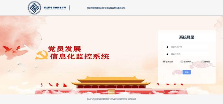 一款针对学院学生党支部开发的基于B/S架构的信息化监控系统,采用了主流的Spring Boot、SSM技术和Vue.js实现,对学生党员培养对象及过程进行了动态的信息管理,并在实际中得以应用。该系统解决了传统的党员管理大部分采用纸质记录的形式,或者通过电子文档和电子表格的形式记录学生党员相关信息,存在着不易汇总、容易丢失、信息传递不及时等问题,帮助支委会及时关注党员发展过程中动态信息。