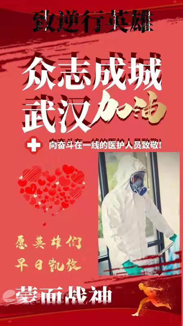 作品说明:本以为现代的战争是一枚炮弹,是一条航母,还有数不清的飞机,坦克,军舰等等;不曾想一颗细微的病菌竟然让一个14亿人口的大国封城,一座座城濒临瘫痪!一场战"疫"悄然打响。而在全国人心惶惶的时候,我们的工程院士钟南山爷爷84岁为我们保驾护航!李兰娟院士76岁带领团队正在研发病毒原理,寻求破解方法!我们的企业家阿里巴巴创始人马云,玻璃巨人曹德旺,华为总裁任正非,小米老板雷军等等等等,所有有担当有热血的中国人都在用行动宣示: 稳住!我们能赢!所以做好我们应该做的——出门戴口罩,回家勤洗手。武汉加油!中国加油!