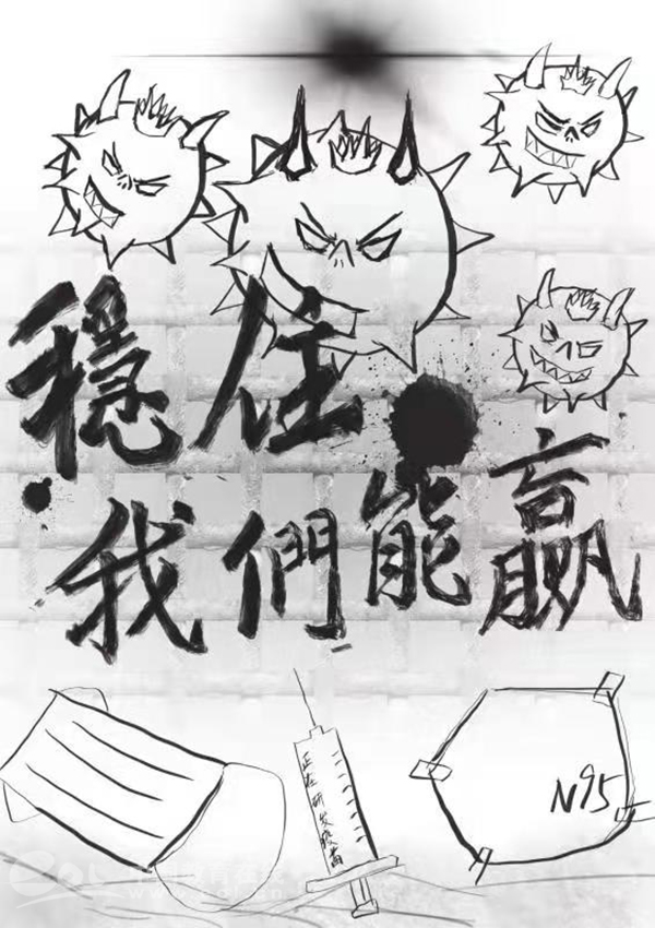 创作感想:这是一场没有硝烟的战争,几乎所有人躲在家中的时候,却有一批又一批的逆行英雄们,坚守在一线,守护人民。厚重的防护服隔离了病毒,却不会阻挡我们对这场战争必胜的信念,这一“疫”,非赢不可。逆行英雄们,你们不是一个人在战斗,你们背后有无数中国人的物质和精神支持。同时,我们必须把祝福献给一座和病毒抗争的城市,献给一场没有硝烟的战争,献给一群大爱无疆的逆行英雄,献给一个众志成城的中国……