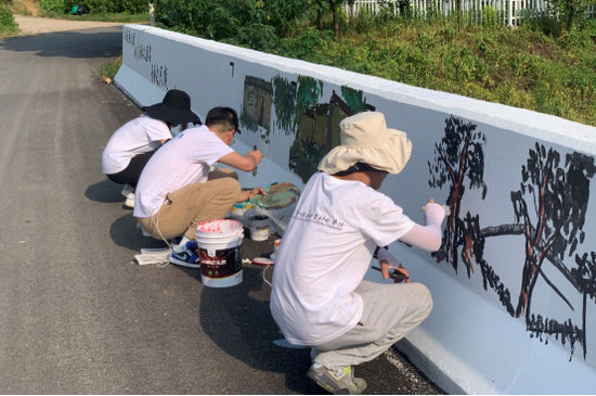 村民们看到师生们在烈日下绘制的“作品”,对“助梦小队”的专业能力、敬业精神给予了充分肯定和赞许,一位村民当即邀请小队成员为她所经营的民宿设计和绘制一面墙饰,师生们爽快答应,并在空闲时与村民讨论起绘制方案。