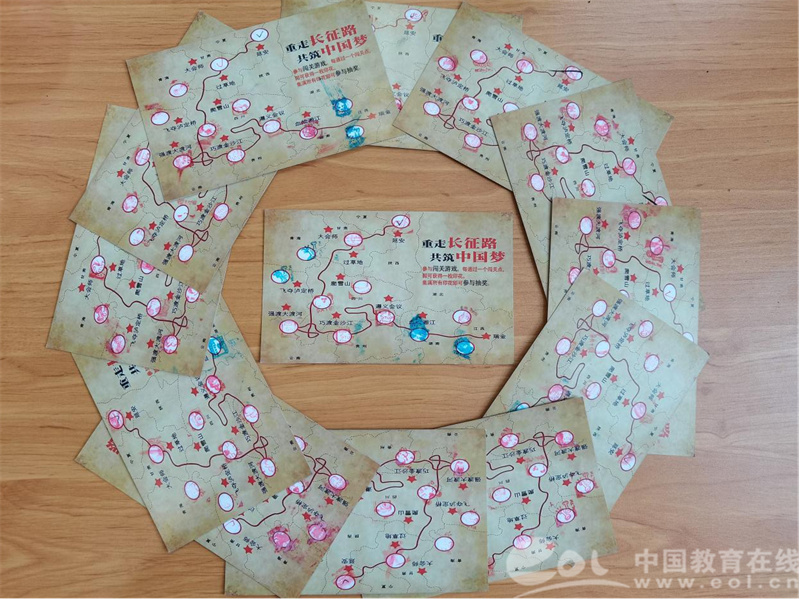 游园活动以“趣味闯关”和“打卡集章”的方式,将党史学习与趣味活动相融合,围绕建党百年光辉历程将活动分为“开天辟地新纪元”、“雄关漫道真如铁”、“改革开放谱新篇”“同心共筑中国梦”4大篇章,同时依照“重走长征路”路线图在校园内共设置了12个打卡点,每个点位设计了各种既充满趣味又极富教育意义的游戏项目,将历史情形再现,学生们通过关卡游戏感受先辈们浴血奋战、百折不挠的坚定信念和攻坚克难、发愤图强的爱国壮举。
