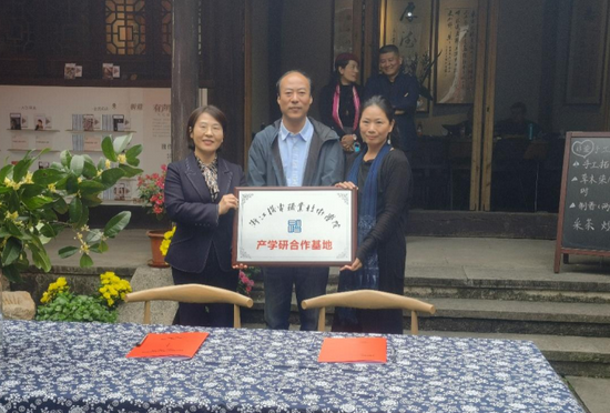 随后,邓劲莲委员代表学院与张志来主任签署石榴籽文创驿站合作协议,并进行了石榴籽文创驿站授牌仪式及产学研合作基地授牌仪式,参会所有师生与参会嘉宾合影留念。