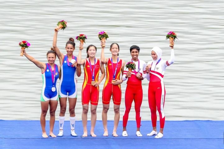 隔天上午,9月24日,亚运首金诞生。赛艇女子轻量级双人双桨决赛,杭州姑娘邹佳琪和队友邱秀萍联手出击,夺得中国队在杭州亚运会的首枚金牌!这也是本届亚运会首金。