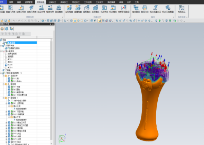 在和设计团队无数次对接碰撞后,学校依托多轴精密数控加工技能工作室与新东阳木雕研创团队共同研讨技术难题、验证加工工艺。依托学校多轴精密数控加工中心的精雕五轴设备,进行0.1微米进给、1微米切削的纳米级精细加工,并将花器产品的制作融入五轴加工实训案例,实施“项目导向、任务驱动、讲解+演示+训练”实践教学模式,激发学生创新思维,同时融合多轴数控精密加工新理念、新技术、新模式,提高生产效率和加工质量,攻克花器的加工技术难题。