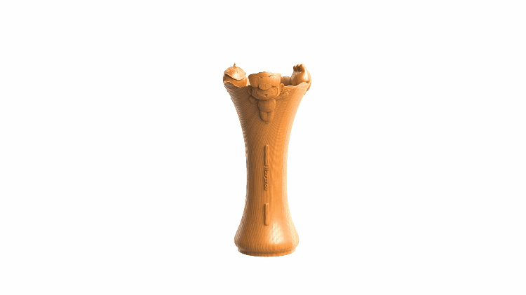 花器是本届亚运会颁奖花束的一大创新,其造型灵感来自中国南宋时期的官窑花觚,由国家级非物质文化遗产东阳木雕制作而成,瓶口起伏的水纹展现浙江山水的韵律之美,瓶口的吉祥物造型以活泼欢快的姿态,庆祝运动员勇创佳绩、收获胜利,花器可供各位获奖运动员永久保存。