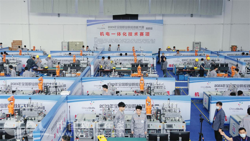 本次赛项从10月14日持续至17日,由教育部、国家发展改革委、科学技术部、工业和信息化部、浙江省人民政府等主办,浙江省教育厅、杭州市人民政府承办,浙江机电职业技术学院等协办。本赛项重点检验选手在PLC控制技术、工业机器人应用技术、变频控制技术、伺服控制技术、工业传感器技术、电机驱动技术、气压传动技术、组态控制技术、数字化设计技术、数字孪生技术、工业现场总线等方面的知识和技能,要求选手具备系统方案规划、设备安装、电气连接、程序编写、功能调试、运行维护、故障排除、系统优化等方面分析问题和解决问题的能力,以及应用新技术、新方法提升设备性能或功能的创新能力。此外,赛项还评价选手的工作效率、临场应变、质量意识、安全意识、节能环保意识和规范操作等职业素养水平。