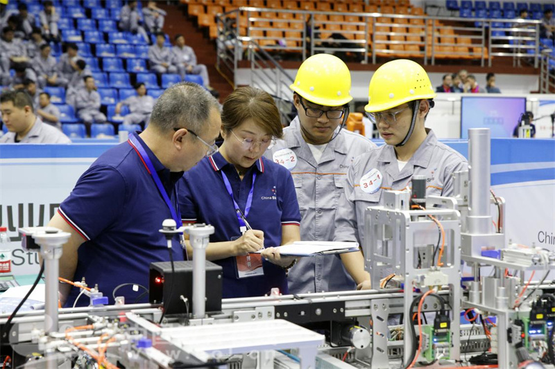 全国各地79支队伍分两批于15日、16日进行比拼。赛项采取团体比赛的形式,参赛队不得跨校组队。每个参赛队由2名选手(设场上队长1名)和2名指导教师组成。参赛选手须为高等职业学校专科、高等职业学校本科全日制在籍学生,或五年制高职学生四、五年级全日制在籍学生。比赛中,选手们相互配合,争分夺秒,精益求精,按工作任务书指定要求,进行机电一体化设备机械电气安装、设备单元编程、设备故障检修等模块的考核。