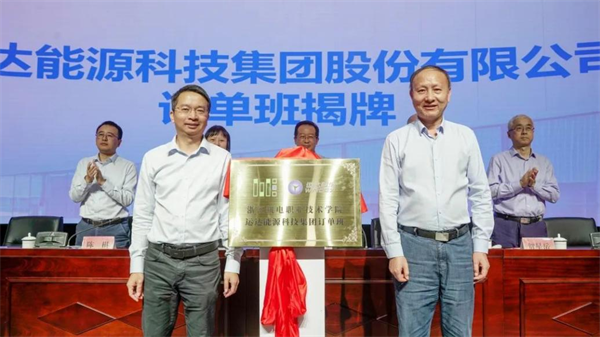 丁明军、陈坚钢为运达能源科技集团股份有限公司现代学徒制试点班揭牌。