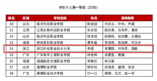 9月,学校图书馆面向全校学生开展动员会;10月,开展专题培训,组织107名学生参加浙江省选拔赛,4名学生成功跻身省前100名,斩获省二等奖和三等奖,其中何贤涛、李煜2位同学晋级全国赛;在全国赛答辩环节中,李煜同学清晰陈述报告内容,沉着回答评委提问,最终以优异成绩获得学生个人赛全国一等奖。