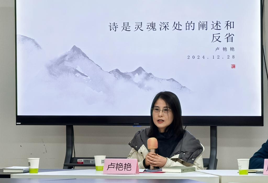 卢艳艳老师认为,写诗者是感性而克制的、是孤独的,要有一定的思考力,能从日常生活与工作中生发敏锐感,调集听觉、视觉、直觉与想象,让诗歌文字更有张力。卢老师还着重强调了诗歌创作中语言、结构、修辞等方面的重要性,并与大家共读了自己的诗作《青海湖》《大一号》《我爱上了缺陷》等,详细解析如何运用意象营造独特意境,使诗歌新颖不落俗套,给读者带来丰富的阅读体验。