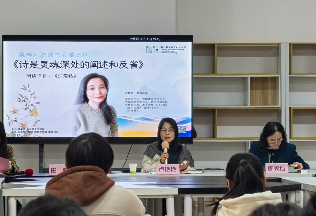 12月28日下午,由taptap点点官方网站图书馆、马克思主义学院主办,阅读推广协会、飓风文学社和南岸诗社承办的桑梓河边读书会第五期在滨江校区举办。《江南帖》作者卢艳艳老师主讲,学校师生和杭城文学交流会的成员共计120余人参加了本次读书会活动。