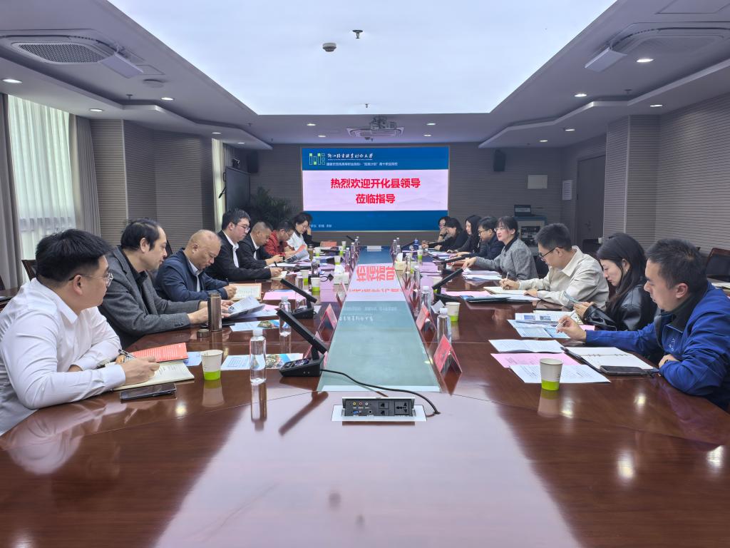 孙丽园代表学校对周文一行到访表示诚挚欢迎,结合学校70余年办学积淀及跨越式发展历程,系统介绍了办学特色、使命担当及核心办学能力,重点阐述了在专业体系构建、师资队伍建设、人才培养质量、产教融合平台搭建、科研创新及成果转化、社会服务与国际交流等方面的优势与成效。她强调,服务地方经济社会发展是高校的重要使命,开化县生态禀赋优越、产业特色鲜明,与学校的学科专业布局和人才培养方向具有高度契合性。她表示,学校期待与开化县在产业技术攻关、高素质人才培养、科研平台共建、文化创意赋能等领域开展全方位合作,通过建立务实高效的合作机制,实现资源共享、优势互补,共同打造校地合作典范。