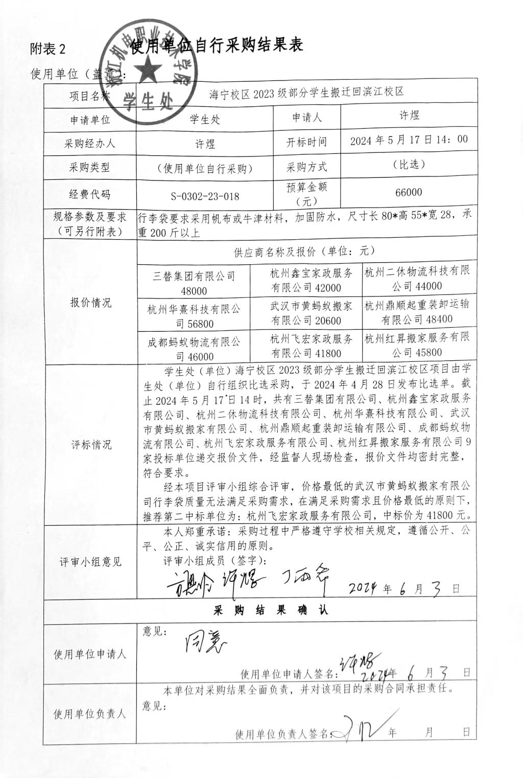 海宁校区2023级部分学生搬迁滨江校区项目比选结果公示