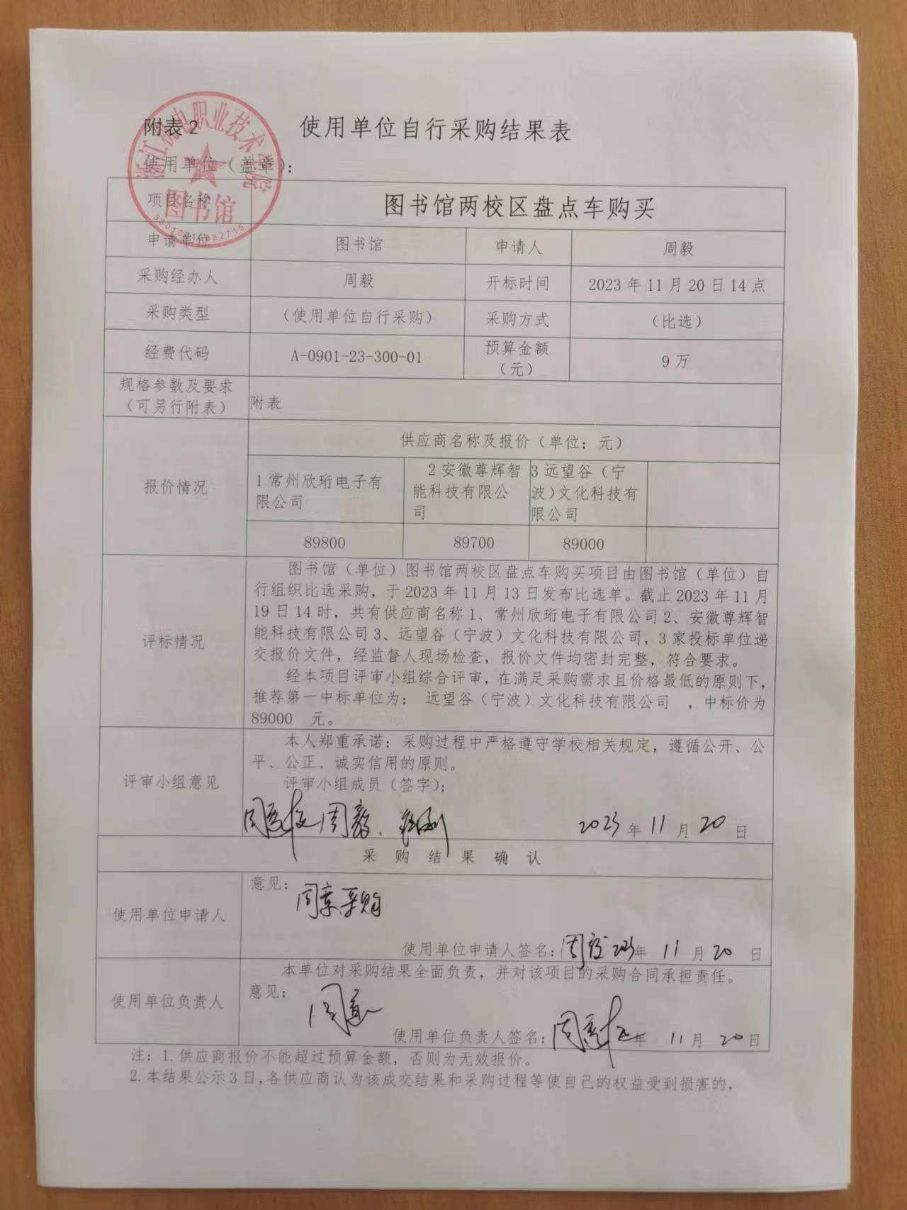 图书馆两校区盘点车采购结果公示