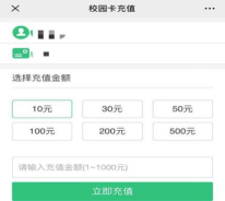 校园服务——卡充值——选择或输入金额——立即充值